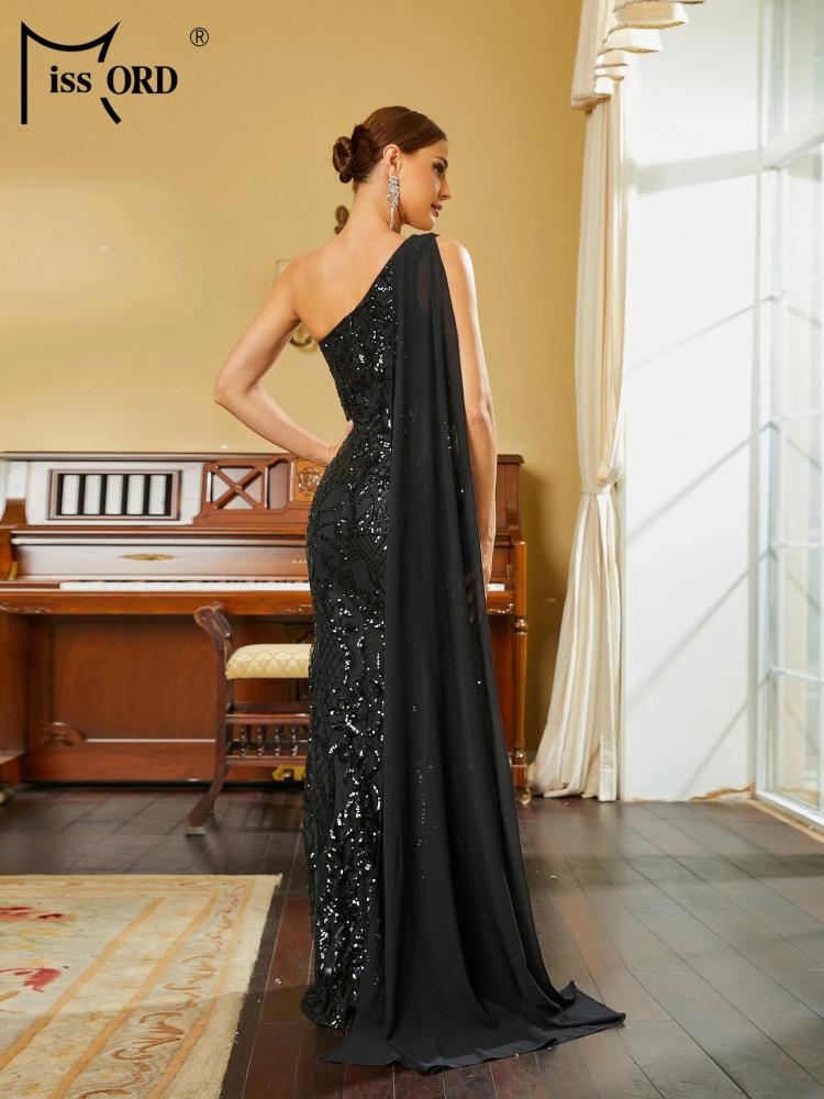 - فستان كتف واحد بتصميم طويل يضفي أناقة ورقي على الإطلالة